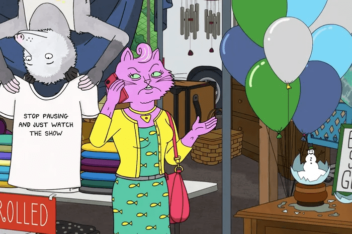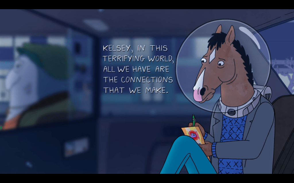 BoJack Horseman es, sin lugar a dudas, una de las series de mi vida como en su momento lo fueron otras (Dos metros bajo tierra fue otra. hace ya un par de décadas… qué viejas somos y cómo hemos cambiado). El primer episodio de BoJack no fue un sumergirse explosivo e instantáneo al fondo de la serie, lo vi incluso extraño, interesante, sí, pero quizá no para mí. Muchas gracietas, animales antropomorfos haciendo y diciendo tonterías, un poco absurdo, un protagonista idiota… Luego ya estuve dentrísimo, todo PEC, como dicen ahora, aunque a veces necesitase salir a la superficie a respirar. Existencialista, cómica, dramática; reír y que se te congele la risa en la cara; luego llorar. Pero, aparte de eso, sacando las poquitas herramientas de interpretación que poseo, me llamó la atención que parecía una serie posmodernista… pero no. Sí, había autorreflexividad, siendo una sitcom animada que habla de las sitcoms y la cultura del espectáculo, había intertextualidad, había ironía, pero… no. Sentía algo en el tono y la formulación de la serie, en los momentos de vulnerabilidad, incluso los más crudos, que parecía ser algo más que un ejercicio posmoderno de ironía solipsista, sin nada que decir más allá de la propia serie, de recordarnos que estábamos ante una serie. Y entonces, buscando, me topé con la palabra metamodernismo y algo hizo clic.